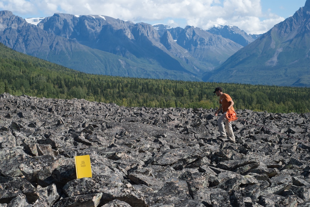 #7DaysOfFieldwork Alaska 2014.@Micascisto got unbelievably good at setting up perfect 20 m x 20 m squares of wire in rough bouldery terrain. I think the final image would make a good September in a geophysicists-for-charity calendar.@RiteintheRain for scale.@RockSourdoughpic.twitter.com/FxltSHGBM0