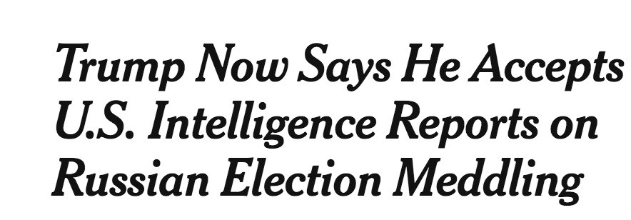 NYT: Trump Now Says He Accepts U.S. Intelligence Reports on Russian Election Meddling Story's 12th paragraph: "'Could be other people also,' Mr. Trump said, appearing to ad-lib. 'A lot of people out there.'" https://www.nytimes.com/2018/07/17/world/europe/trump-putin-summit.html?hp&action=click&pgtype=Homepage&clickSource=story-heading&module=a-lede-package-region®ion=top-news&WT.nav=top-news …https://twitter.com/ericuman/status/1019386009098866690 …