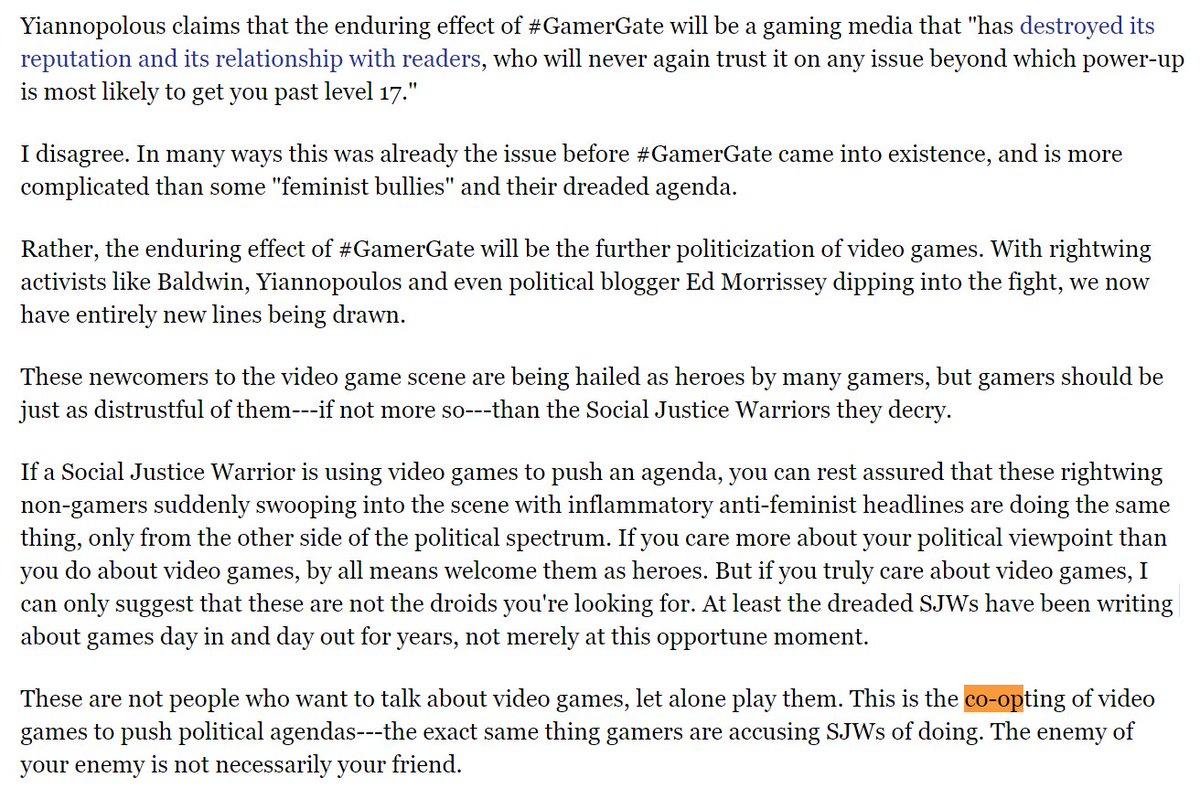 This is what I said about the sudden appearance of Milo and right-wing opportunists back in 2014 when #GamerGate was kicking off. I think I was right. And judging by what Bannon has said, I think this was always the plan.pic.twitter.com/bMf07Z19jR