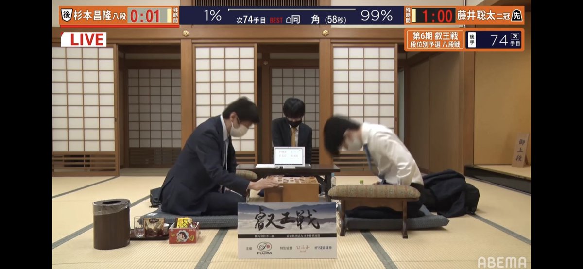 藤井二冠、3度目の師弟対決を制す! 一瞬の寄せでしたね…強い…。 これで叡王戦八段予選Cブロックで3回戦進出(本戦まであと2勝)。 そして杉本八段との師弟戦は藤井二冠の3連勝です。 そして解説の横山先生、藤井二冠にも劣らない手の見え方ですごい…pic.twitter.com/TPMHIOAwF2