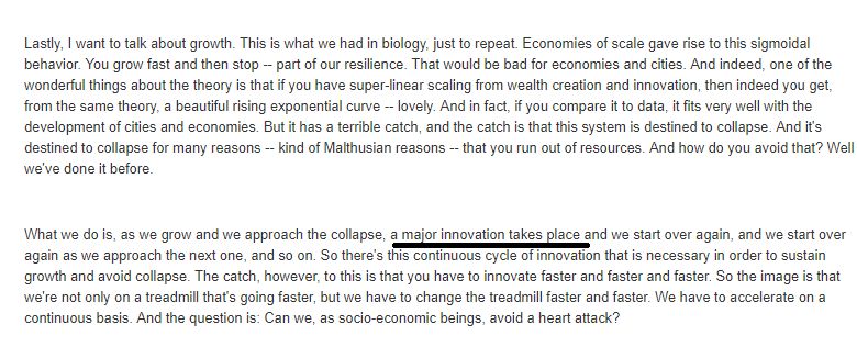 Geoffrey West, in “Scale”, writes that growth is unsustainable (attached) Tyler Cowen says "but on what time scale? Let’s take 2,000 yrs more" (Others think it's sooner) Andrew McAfee, “More from Less” says growth isn't the problem, it’s the solution Which is most accurate?pic.twitter.com/p3n9oy1M5e