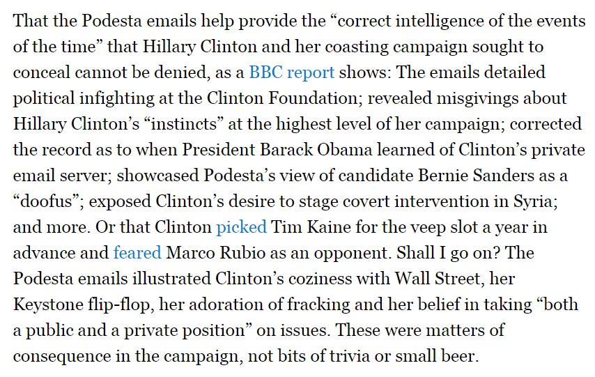 A reminder: every reporter who gleefully trafficked in stolen emails via wikileaks abetted a crime. Not illegal activity by itself but unethical and immoral.