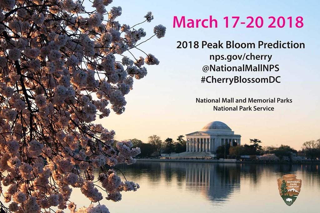 PEAK BLOOM PROJECTED DATES ARE IN!!! We look forward to seeing the cherry trees in bloom March 17-20!
