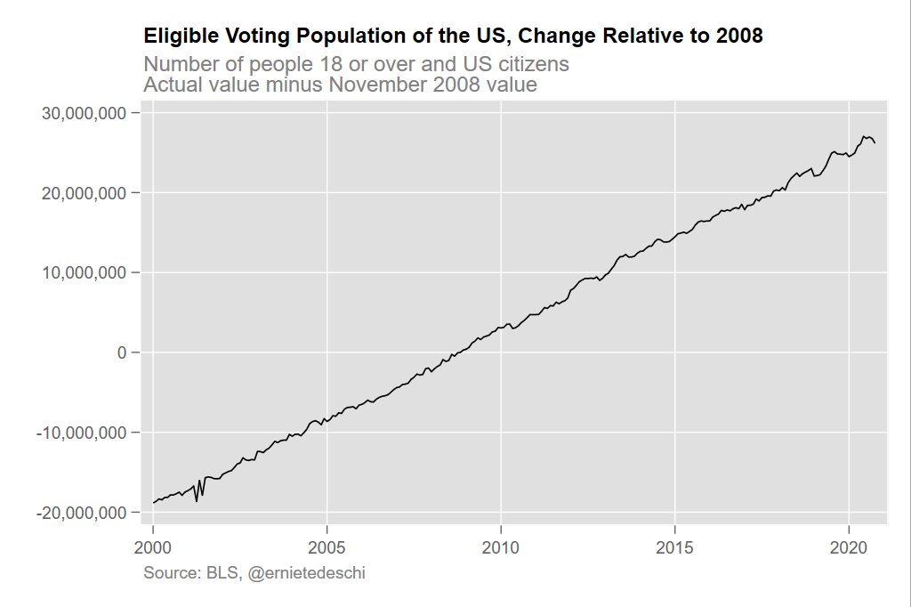 Scott missed the part where we added half of the Millennial Generation (the biggest demographic cohort) + half of Gen Z to voter eligibility in the last 12 years