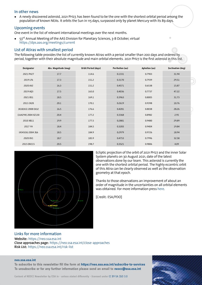 #asteroid has been discovered in the inner Solar System. '2021 PH27' has an extremely short orbit. Getting very close indeed, it takes just 4 months to circle the Sun Our Near-Earth Object Coord. Centre#NEOCC wrote all about it