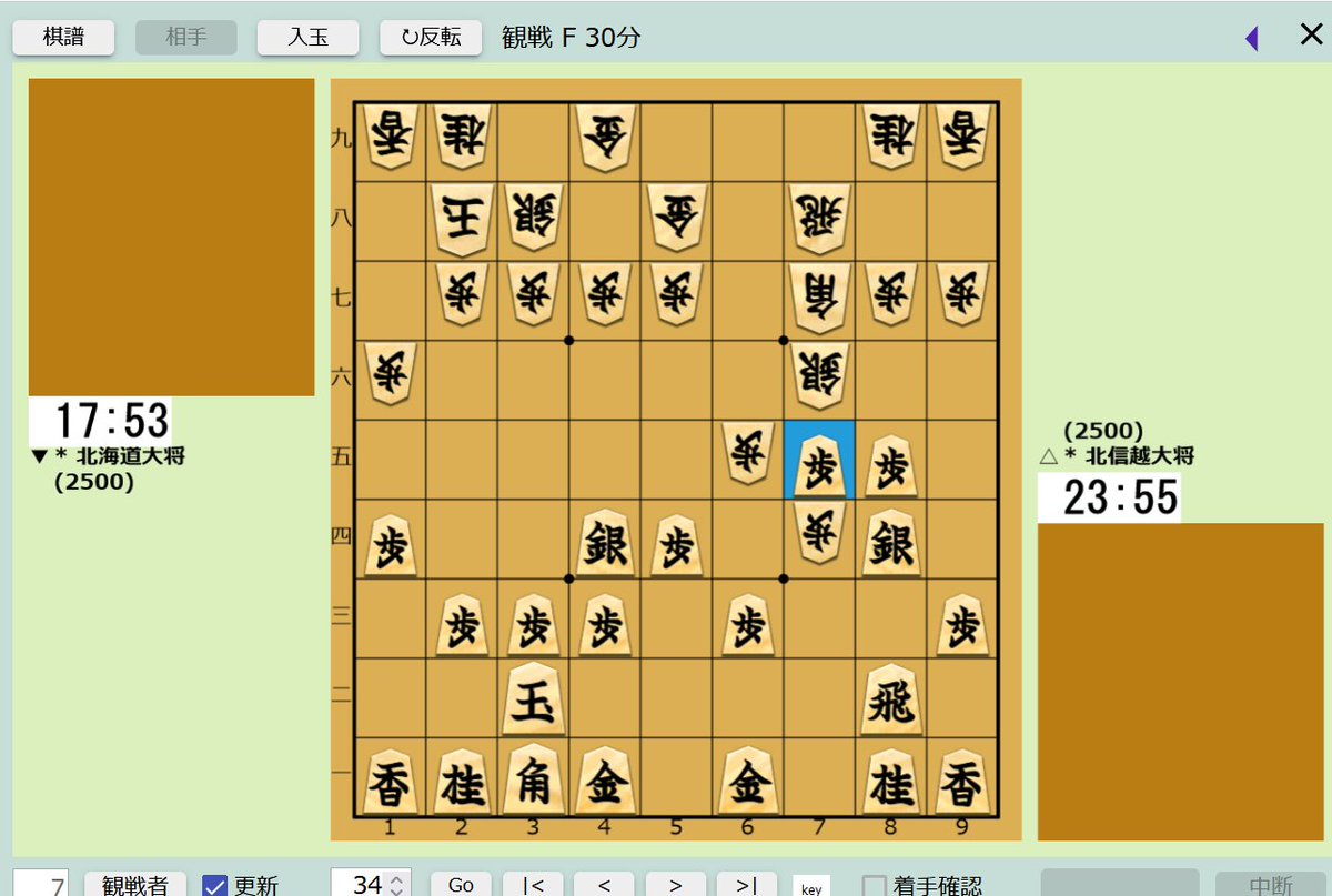 昨夜色々問題が発覚し開催が一時期危ぶまれた(?) 本大会ではあるが何事もなく番井は四間飛車に対して 英春流を指す