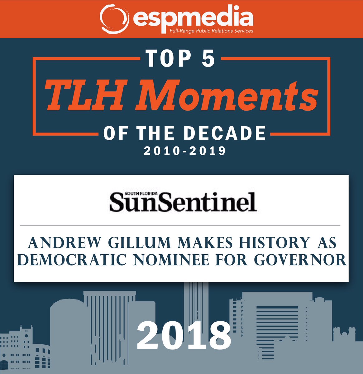 @AndrewGillum as the first African-American Nominee for Governor in 2018. All eyes were on the city for this historic moment.#TallyMomentsoftheDecadepic.twitter.com/gxAzBkfv56