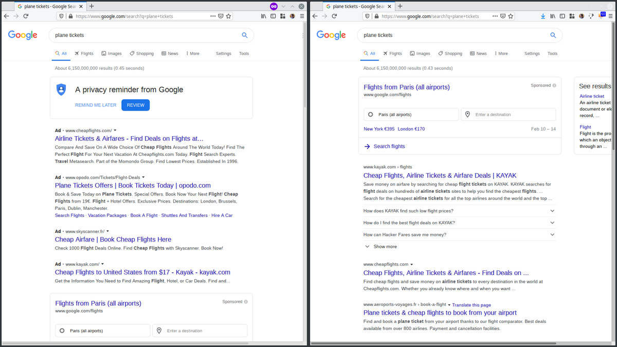 I am now in A/B testing hell: either I no longer have ANY ADS, or there is literally no way to tell whether the result was paid for. Left is the redesign in Incognito mode, right is the test in which I am included.pic.twitter.com/JEmVyhKi9y
