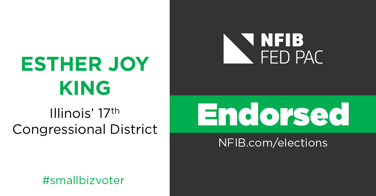 @esther4congress for election to the U.S. House of Representatives. She understands the critical role#smallbiz have in our nation’s economic success and supports permanency for the Tax Cuts and Jobs Act.#IL17#smallbizvoter@nfib_ilpic.twitter.com/xHQ0PR8Sui