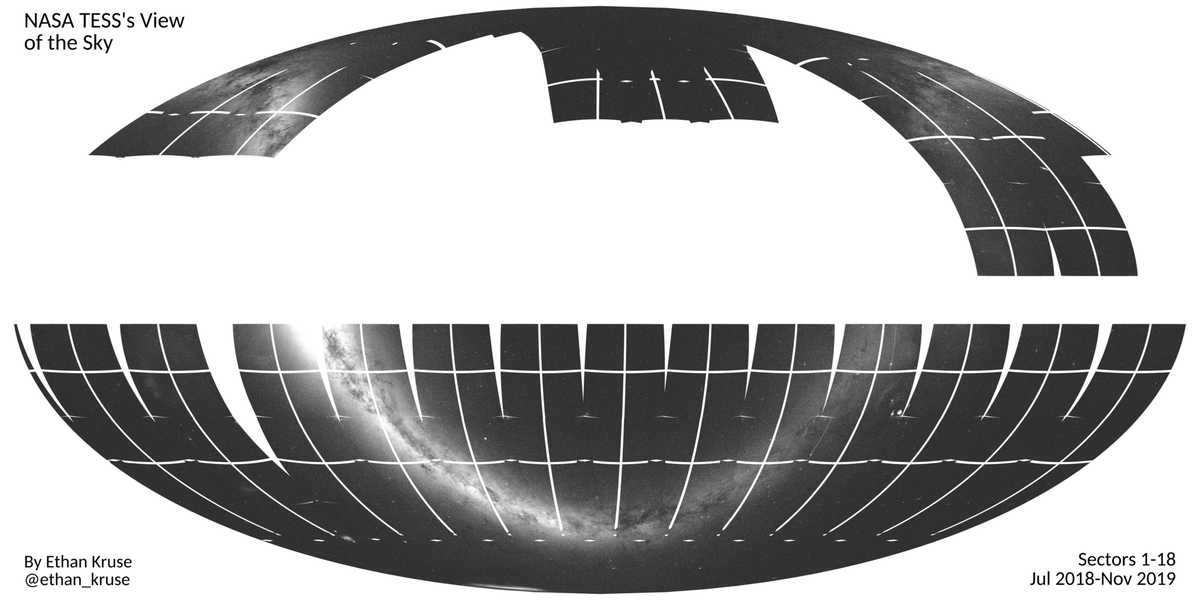 @NASA_TESS's first data release, we're really starting to fill out the sky! Just a shame the scattered light caused some sectors to shift north and break the symmetry.pic.twitter.com/Mwwi4LtltQ