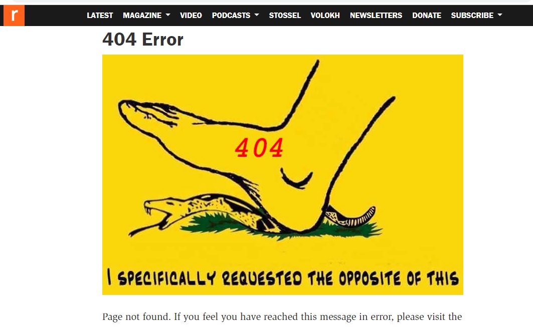 Just in case some of you have never seen the "404 Error" page on Reason Dot Compic.twitter.com/xua9fmCtki