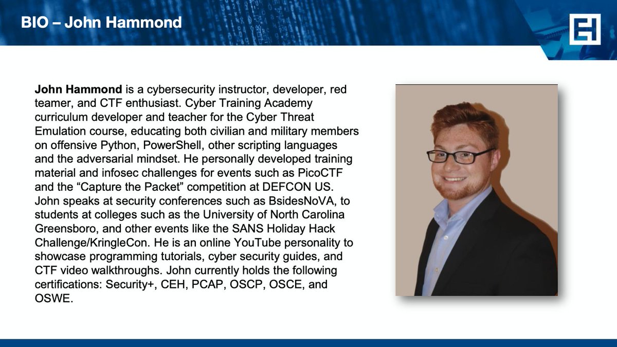@_johnhammond:#cybersecurity instructor,#redteam extraordinaire, YouTube personality,#CTF enthusiast, and more!#ehnetpic.twitter.com/0rJlAWvsUg