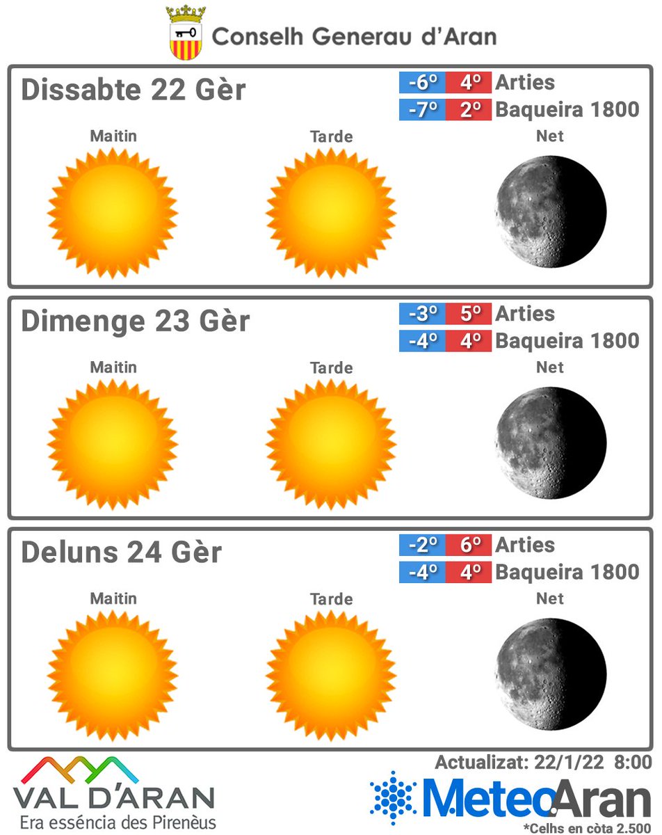 #ValdAran Hoy 6°/18° en Bausen; 4°/15° en Arres Más en http://www.meteoaran.com Info ofrecida por:@Bar_Basteret@Copos_Ski@PyreneesHeliski http://www.hotelethsolanvielha.com http://www.parquesbaqueira1500beret.com pic.twitter.com/IOklNaxxFT