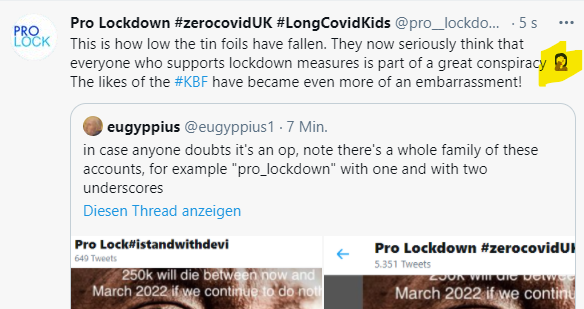 both this and the sister account are deeply obsessed over the KBF hashtag, single underscore "pro_lockdown" repeatedly rants about how they're terrorists.pic.twitter.com/0sLtDNocO2
