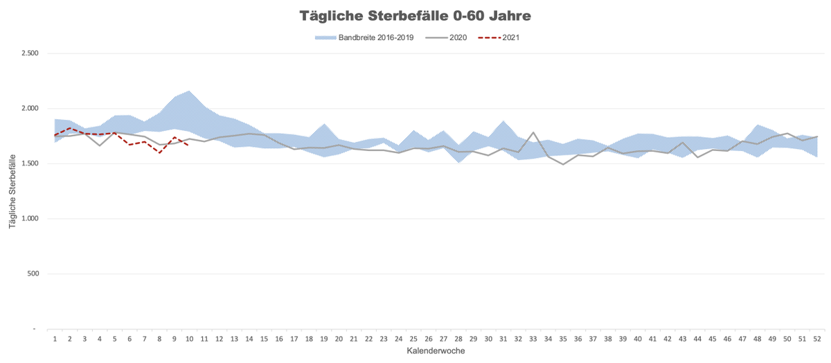 Umso mehr Daten man auswertet, desto weniger versteht man die Panik insbesondere bei jüngeren Menschen. Sterbefälle der Altersgruppe 0-60 Jahre.pic.twitter.com/sRlYi4fSmP