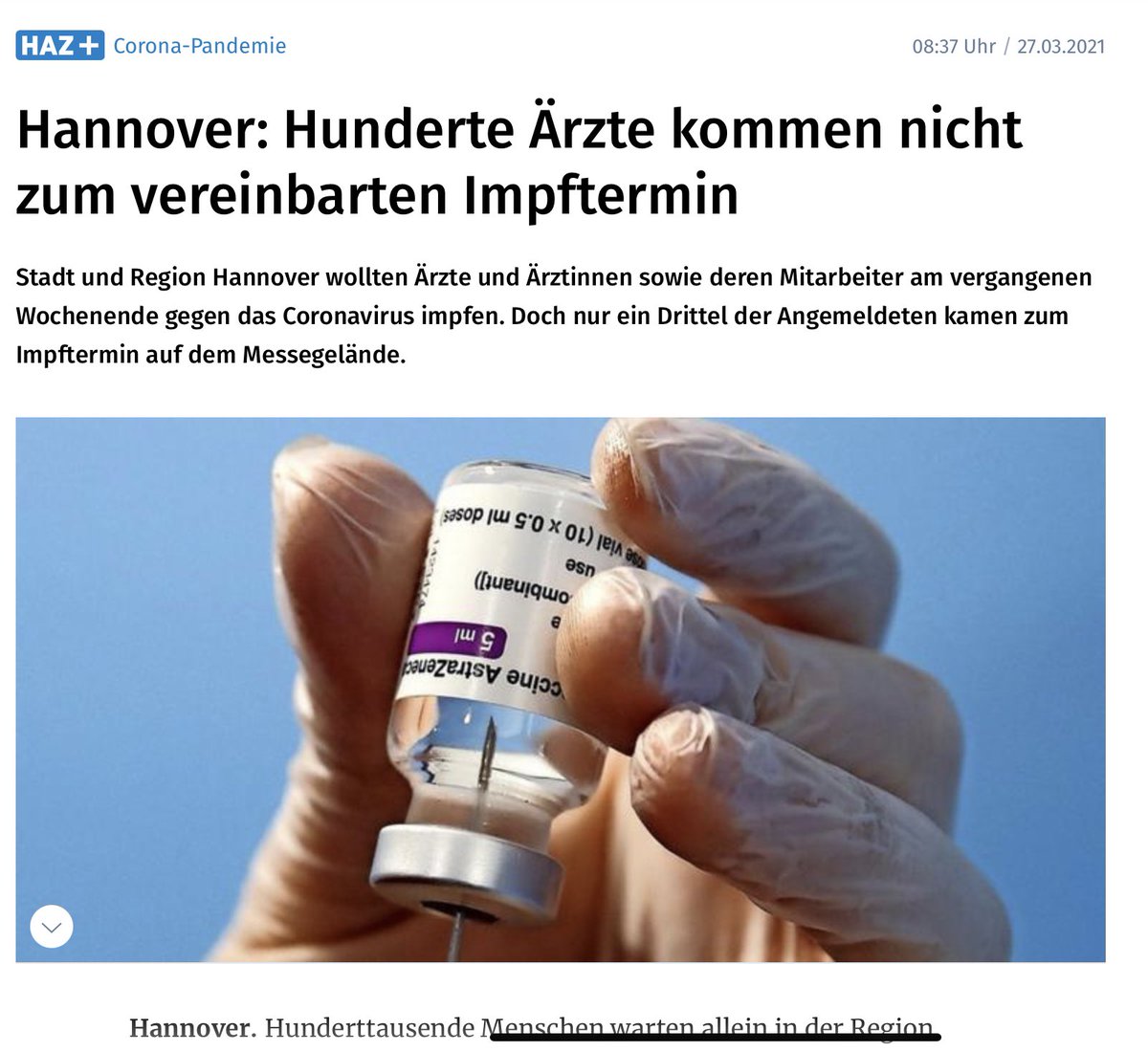 Two-thirds of doctors in Hannover are skipping their vaccination appointments. Once again, aside from predictable demographic segments of the population who have been traumatised by health propaganda, very few people seem to be scared of Corona.https://twitter.com/rosenbusch_/status/1375738707031027714 …
