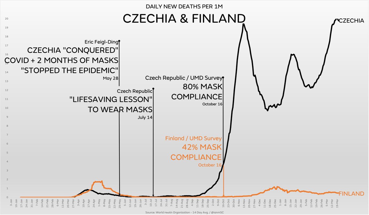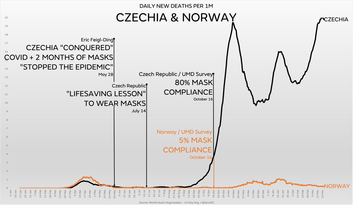 What’s great about masks is that they never have to actually work. Like the Czech Republic, which @DrEricDing said “conquered” Covid with masks, seeing results dramatically worse than countries with much, much lower mask usage.