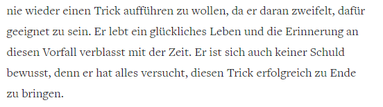 " ... and swears never to perform a trick again, as he doubts he is fit to do so. He lives a happy life and the memory of this incident fades in time. He also feels no guilt, because he did all he could to make his trick a success."pic.twitter.com/Q7SBBqBdsH