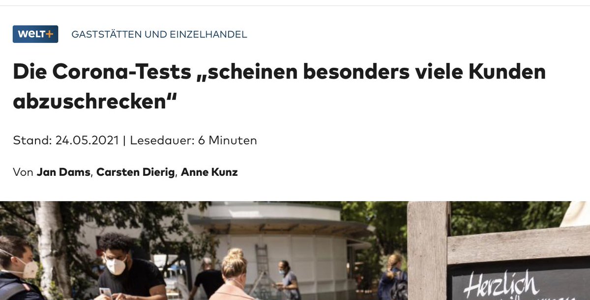 „Corona-Tests appear to deter a lot of customers“ Yeah no shit. Risk of false positive (after which mandatory quarantine, tracing, etc) is substantial, testing centres are huge hassle, medical surveillance is odious to many, pubs & street retail depend heavily on spontaneity.pic.twitter.com/3z1EITgSUm