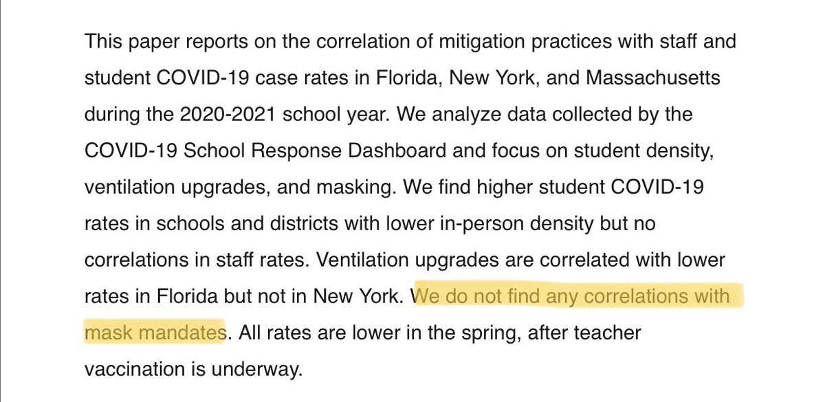 Masks do nothing, OK? They do absolutely nothing. When you impose them, infections don‘t go down; when you raise them, infections don‘t go up. Just because it makes sense in your mind that mask mandates prevent Corona infection, doesn‘t make it true. https://www.medrxiv.org/content/10.1101/2021.05.19.21257467v1 …pic.twitter.com/flfXwMzp4y