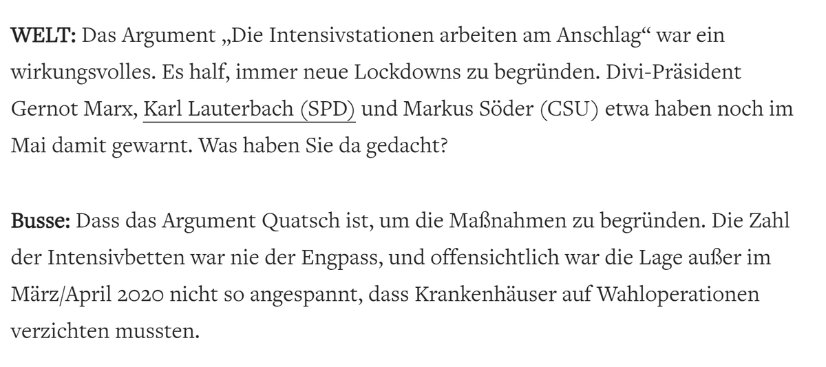 Central disease statistics are propaganda Welt asks a health economist at TU Berlin what happened to 3.000 ICU beds that vanished from stats in Dec. Were they (as some say) unneeded beds for children? "Nobody knows," he says. "Also nobody knows how many ICU beds there even are"pic.twitter.com/FBOzjbLZuT