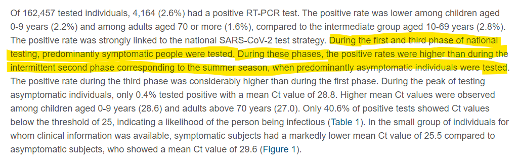 People w/symptoms are already staying home, remember. The added utility of testing them is very unclear But you need every last positive result you can get, so you test them mainly, and you test at high Ct thresholds to catch as many old no-longer-relevant infections as possible