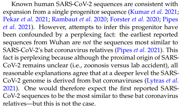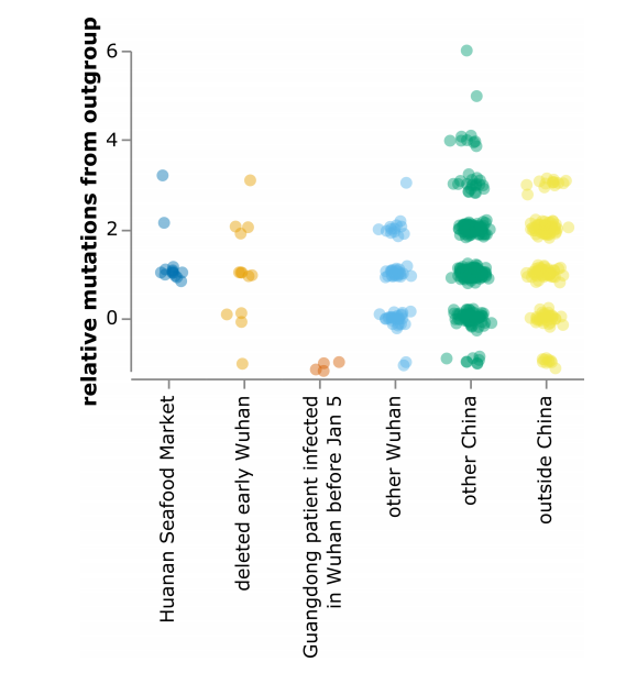 This created the obvious problem, that virus sequences from outside Wuhan (not only from elsewhere in China, but elsewhere in the world) seemed to be phylogenetically prior to the Wuhan viruses. Because only the seafood market samples were known, and that was a late outbreak.