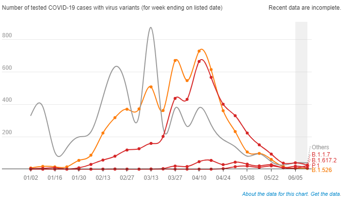 lol this guy Cases way down in NYC, VArIanT cases down in NYC, but the *relative share* of Delta cases are up, so he freaks out about that. When all the numbers be low, relative gains be easy. An increase of *16* Delta cases is what we're talking about here. https://twitter.com/DrEricDing/status/1408282577098743810 …pic.twitter.com/0eUi2kkLaZ
