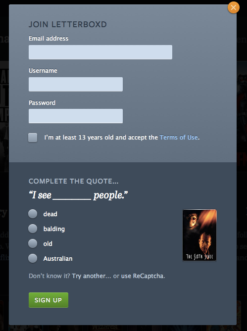 #Captcha for movie lovers! by@letterboxd#creativity#ux#designthinkingpic.twitter.com/JtpZKw5oJn