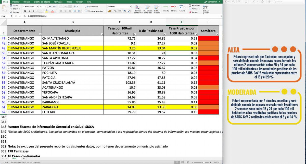 Creo q nuevamente hay problemas con los datos que presentan, este el caso de Chimaltenango, deberian de haber dos municipios en amarillo