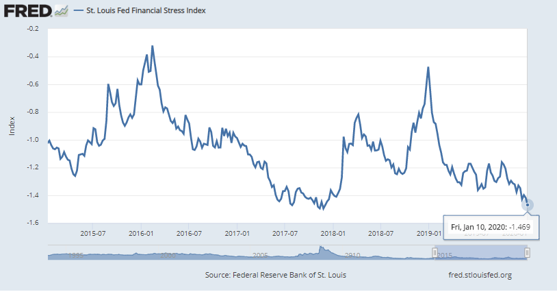 St. Louis Fed Financial Stress Index falls to -1.469 in the week ending Jan. 10, its lowest level since December 2017 (normal stress=0) http://ow.ly/qzqK50xXvgQ pic.twitter.com/vqAKXEU09Y