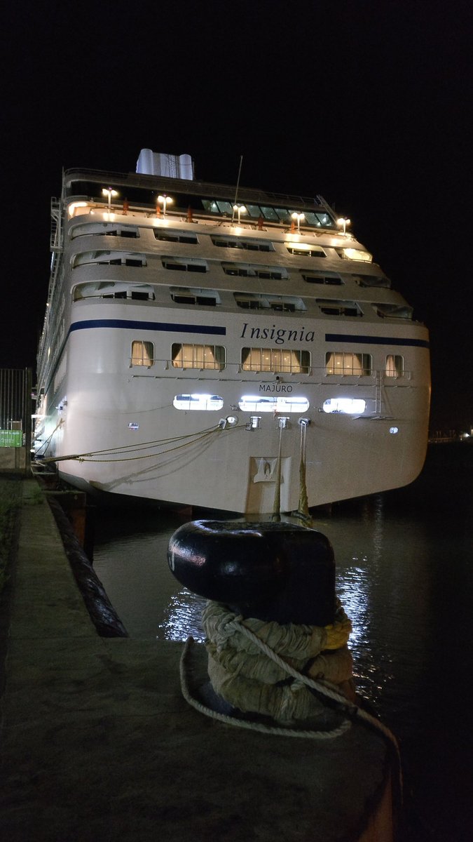 El crucero de lujo Insignia en el Puerto de Sevilla.