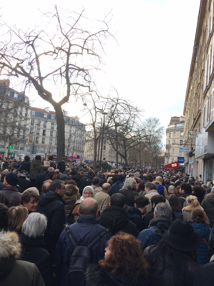 Hoewel, stil was het net niet, de extreemlinkse leider Jean-Luc Mélenchon werd uitgejoeld. Joodse belangenclub Crif wilde hem er niet bij hebben vanavond, omdat hij boycotacties tegen Israël steunt, maar hij kwam toch