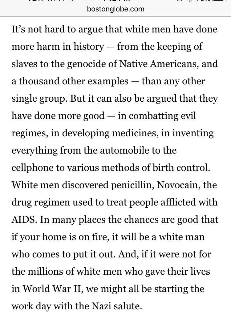 While some media companies are pivoting to a video model, the Boston Globe intends to survive off hate clicks. https://www.bostonglobe.com/opinion/2017/07/02/defense-white-male/Me9UoUrcPbcljxRkPFlXAP/amp.html …