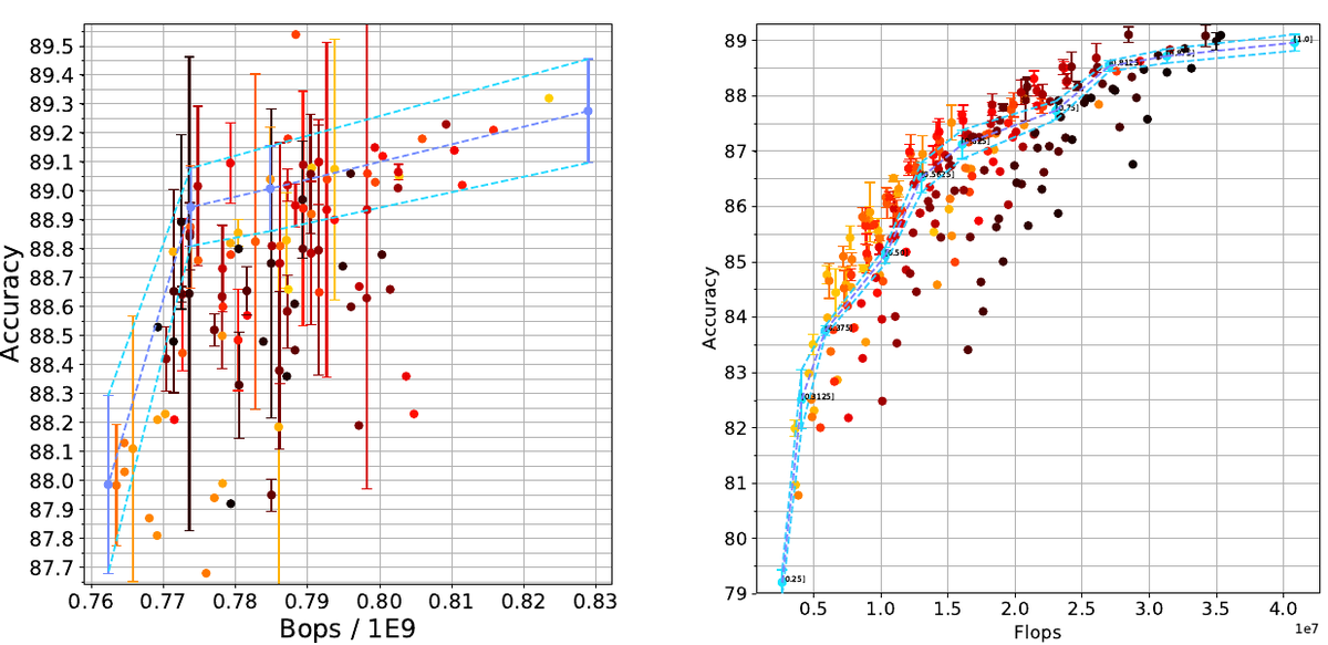 Our new paper, "Towards Learning of Filter-Level Heterogeneous Compression of CNNs": https://arxiv.org/abs/1904.09872 tl;dr: we played with differentiable NAS for network compression (quantization and pruning). It turned out to be tricky, unstable and still requires tons of resources.pic.twitter.com/8sinEFoNZC