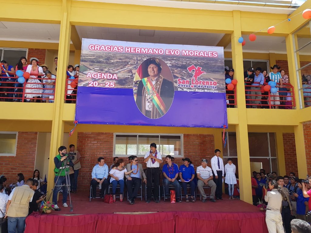 Llegamos a la provincia Eustaquio Méndez en San Lorenzo, #Tarija, para entregar la Unidad Educativa Cnl. Lino Morales que con una inversión de Bs 6,5 MM, beneficiará a 360 estudiantes de la comunidad de Lajas. Un merecido homenaje a nuestro héroe de la Batalla de Canchas Blancas.pic.twitter.com/43Wfyn0hYC