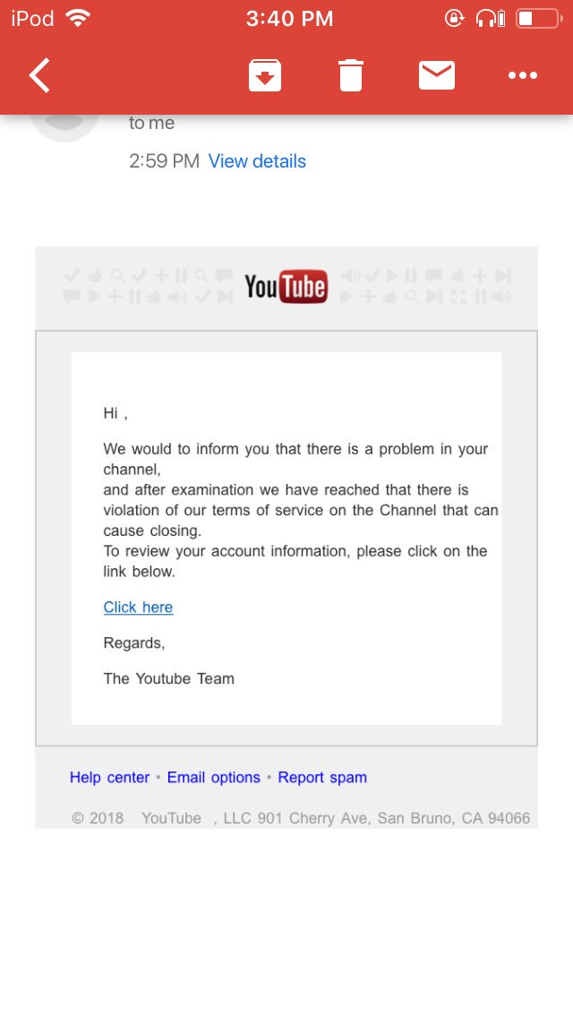 To anyone sent this, it is a hoax, contact @TeamYouTube to get their attentiom about someone spreading false channel eleminatiom claims #youtube @KEEMSTAR