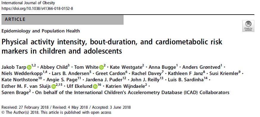 #PhysicalActivity intensity, contrary to bout-duration, appeared a major determinant of variation in cardiometabolic risk factors. https://www.nature.com/articles/s41366-018-0152-8.pdf …#OpenAccesspic.twitter.com/LamROjYxje