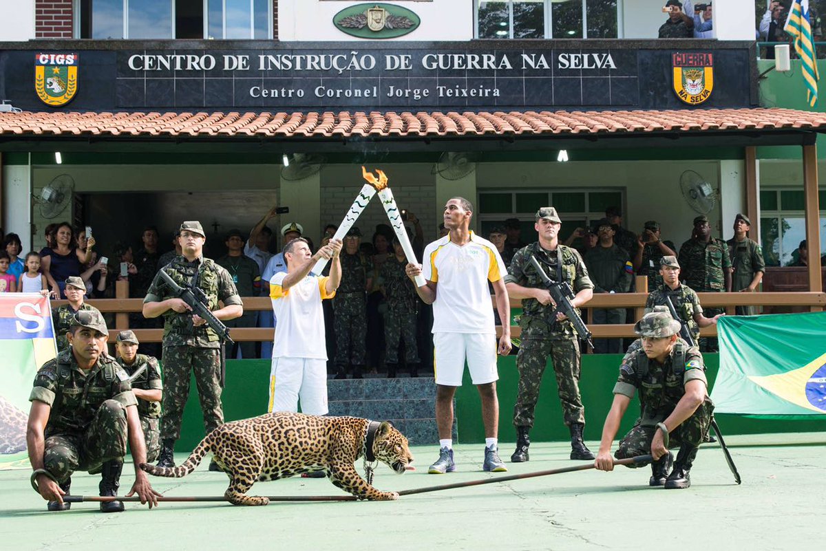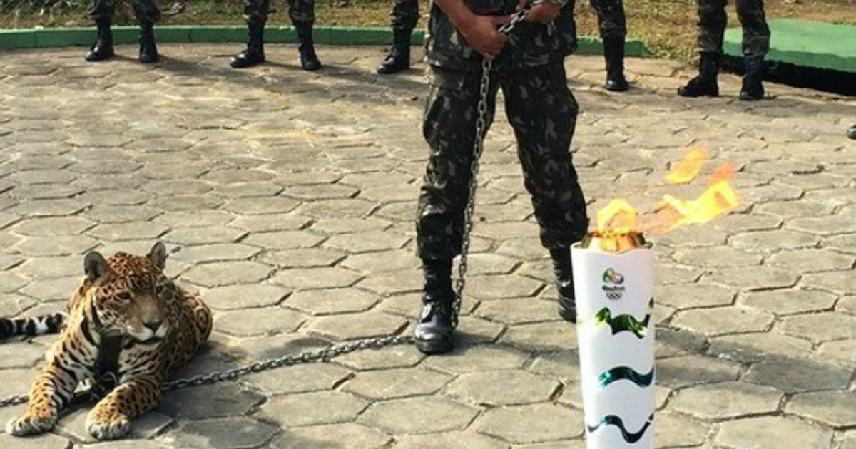 qual a necessidade da onça acorrentada. Para o evento da tocha olímpica. No Brasil. Em 2016.
