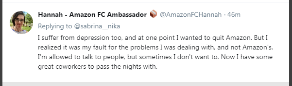 I don't even believe they are real Amazon employees. It would hurt productivity a lot for workers to hang on TW. Most likely it's some other company specialized in online propaganda that got contracted for the service.