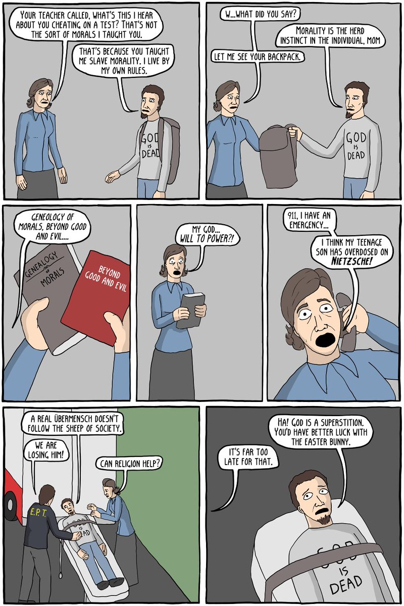@existentialcoms Nah man, Nietzsche isn't actively trying to apply his theory to ultimately eliminate the existence of social welfare.