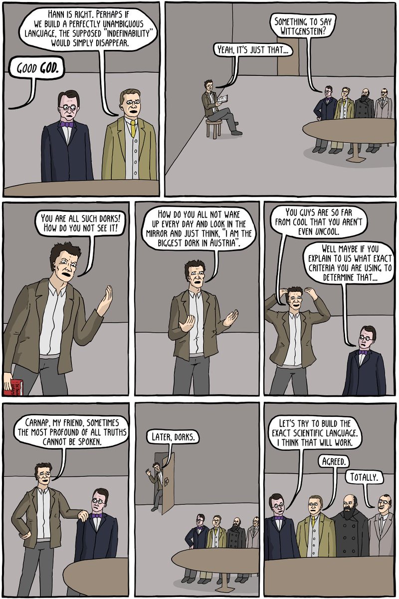 you know what's even less cool than making comics about logical positivists? writing tweets about comics about logical positivists.