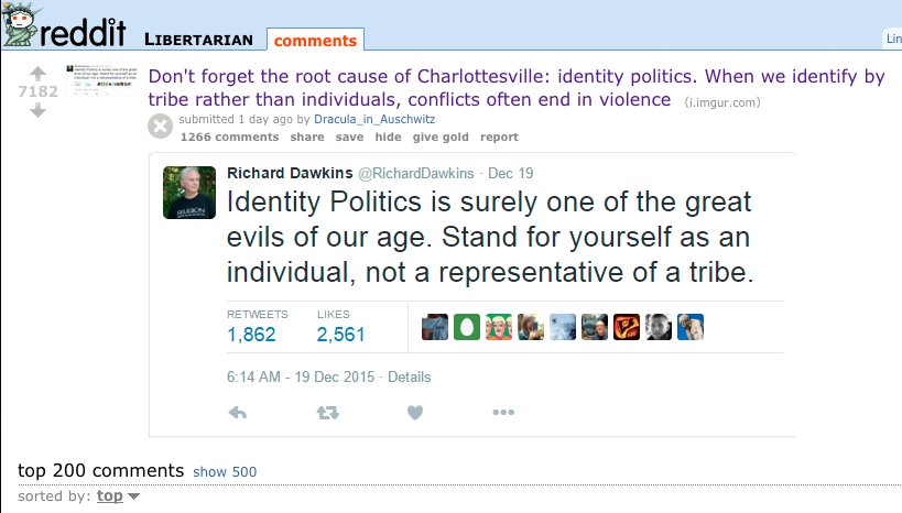 And now, let's find out what the freedom loving Libertarian subreddit is discussing with a Fascist murdering a protestor in the news...pic.twitter.com/TwWKIU96AM
