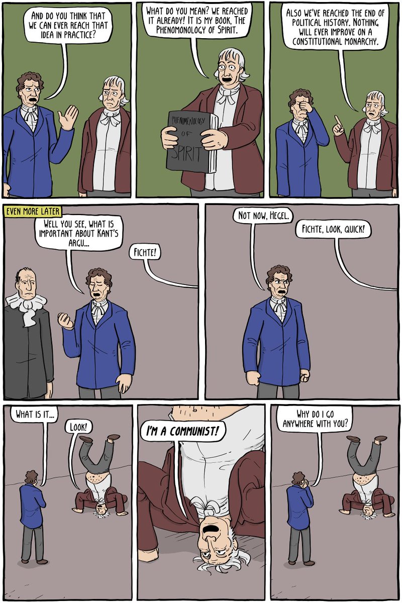Someone on Facebook is complaining this comic does not accurately represent Hegel. Lies and slander. Nothing has ever been more accurate.