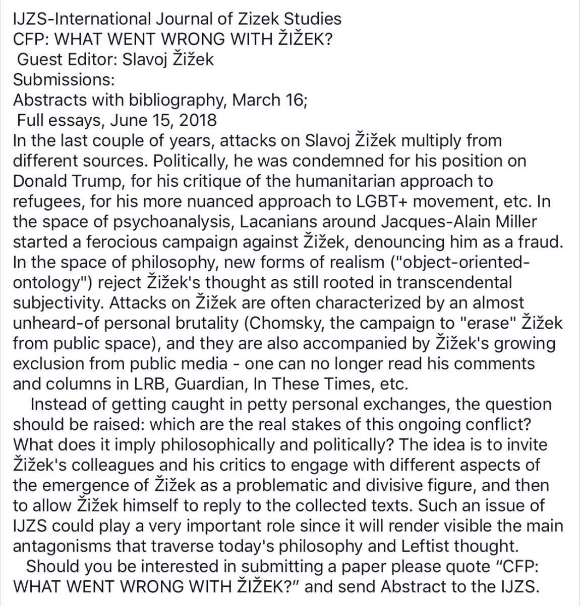 OMg Zizek editing the Zizek journal's special edition on "What Went Wrong With Zizek" Incredible.https://twitter.com/chrisjudetaylor/status/960038027270737921 …