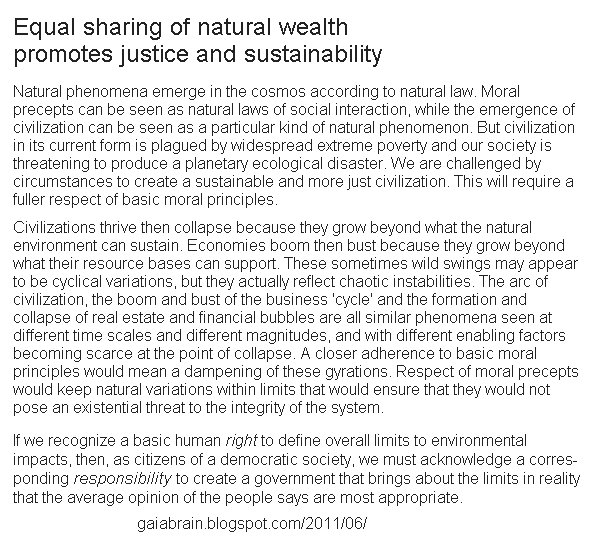 We *could* create a sustainable and just society by more fully respecting property rights. Air and water and other natural resources belong to all. When industries take resources or put pollution, they should pay compensation to the people at large. http://gaiabrain.blogspot.com/2011/06/golden-rule-and-public-property-rights.html …pic.twitter.com/Q51eiUqOI8