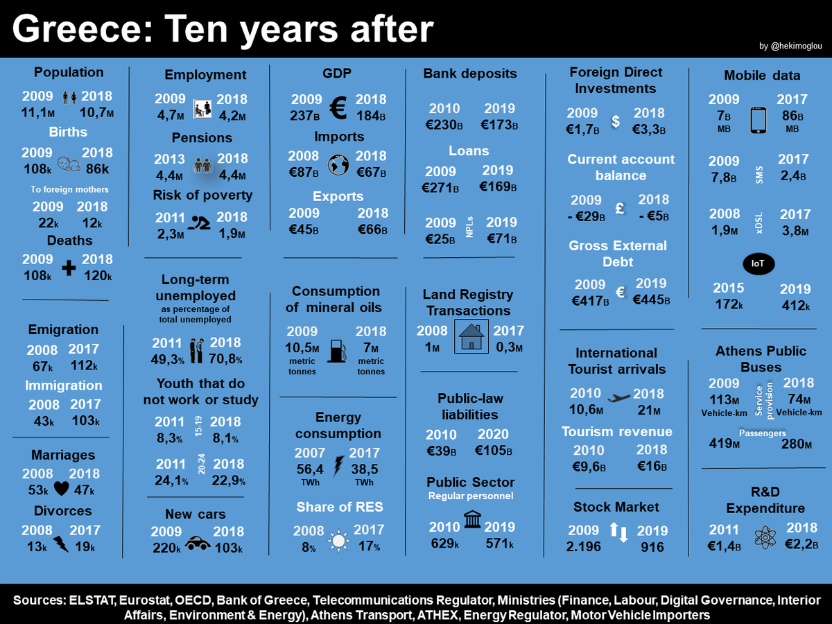 Every piece of statistical data can tell a version of the truth, deceit or reveal the elephant in the room. Voila: The international version of my recent info-graphics - a snapshot of Greece's recent adventures. That's all folks!