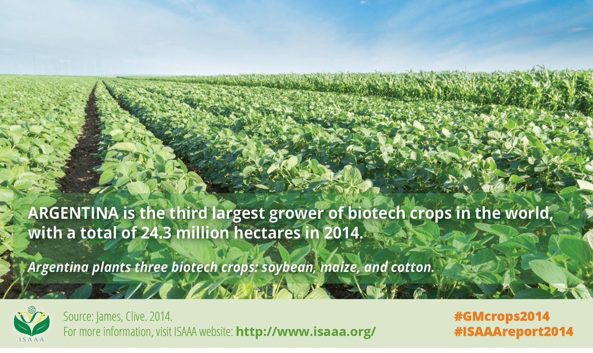 #Argentina is world's 3rd largest grower of biotech crops 23.4M hectares in 2014 http://bit.ly/15MF0n8 pic.twitter.com/lyO4W8ofBm