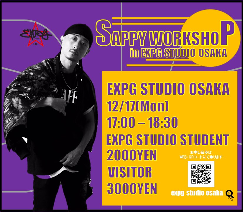 『SAPPY WORKSHOP in EXPG STUDIO OSAKA』 CRAZYBOYのバックダンサー, LDHアーティストのツアーダンサーやMV出演など、 多岐に渡って活躍している SAPPY!! EXPG STUDIOへ通われていない方も ご参加いただけます!! お申込み・詳細はこちら! https://expg.jp/info/detail.php?info_id=3670&category_id=2 …pic.twitter.com/75zr2HmWd0