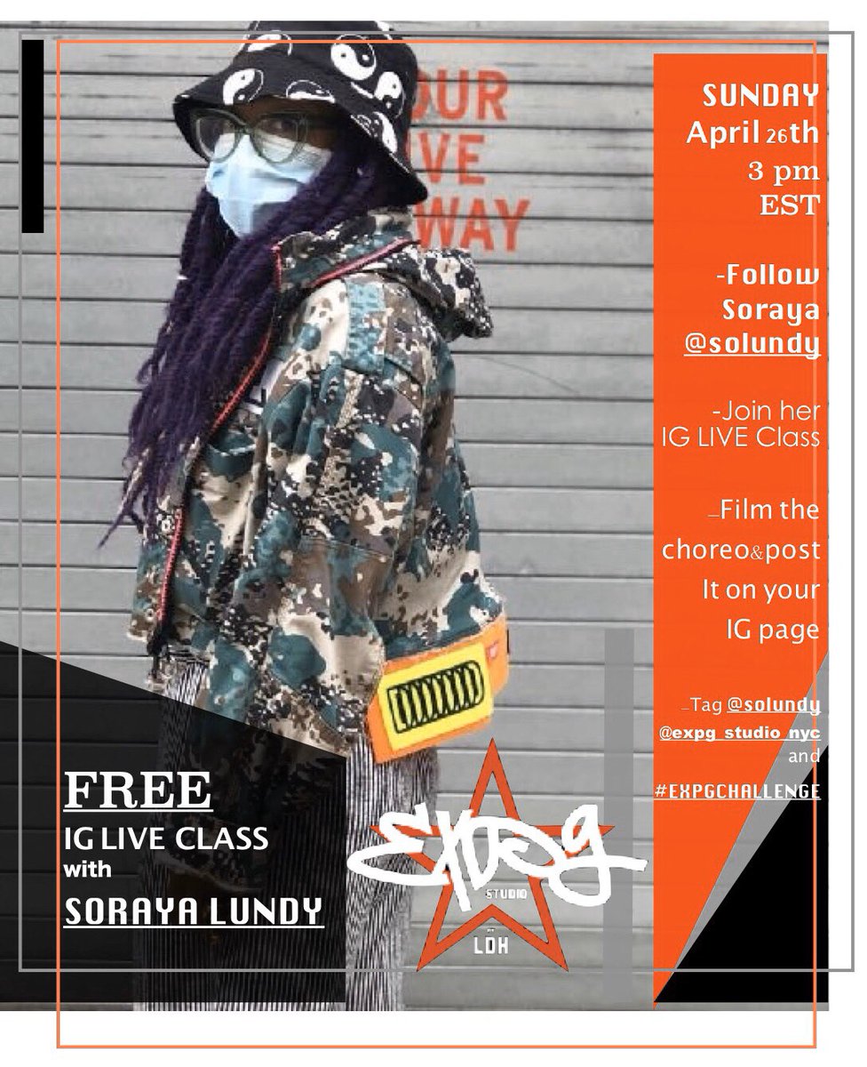 EXPG STUDIO NY の人気インストラクターSoraya LundyがNY時間の4月26日(日)15:00(日本時間4月27日4:00)よりインスタライブにて無料ダンスレッスンを行います!!